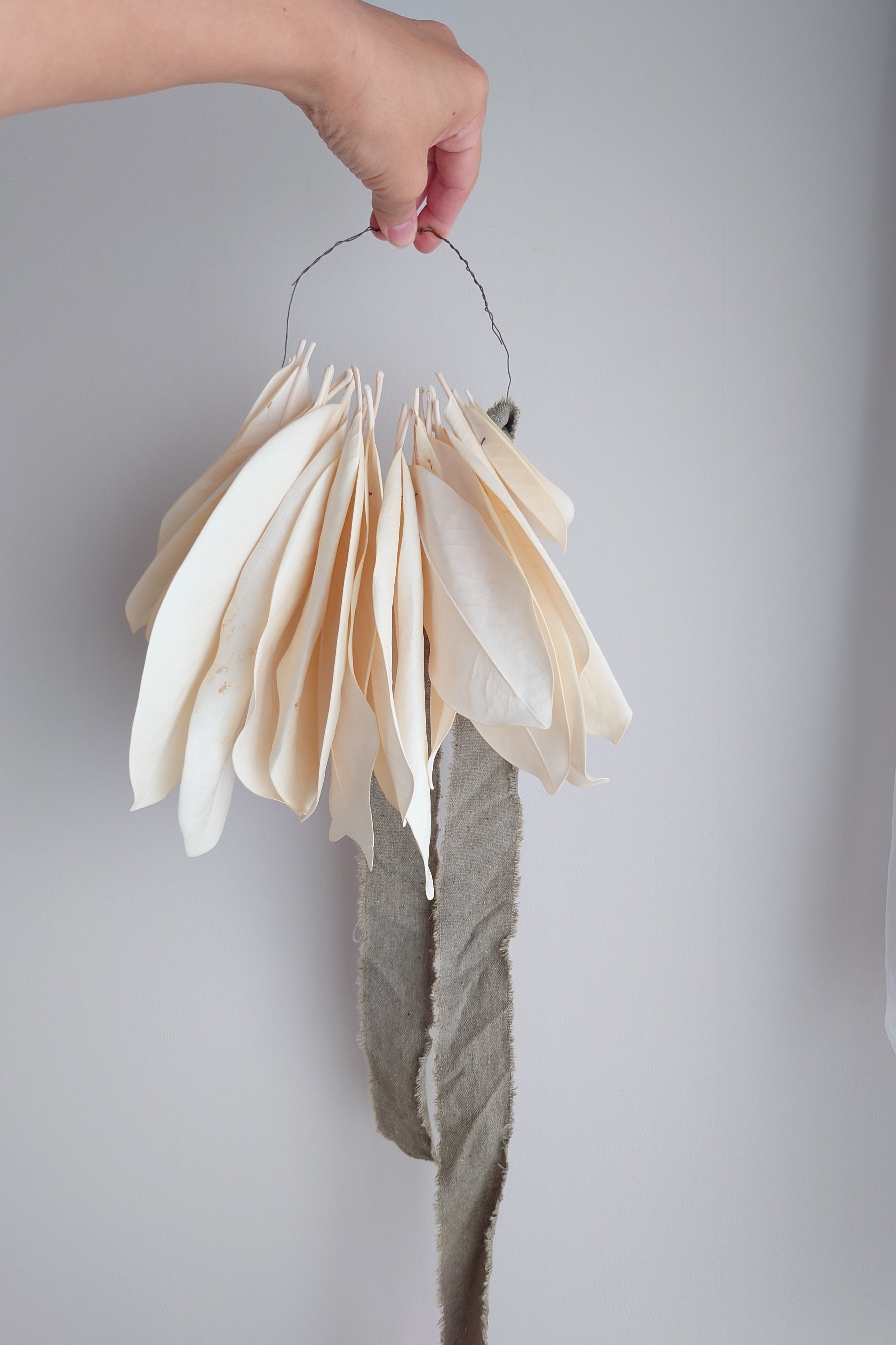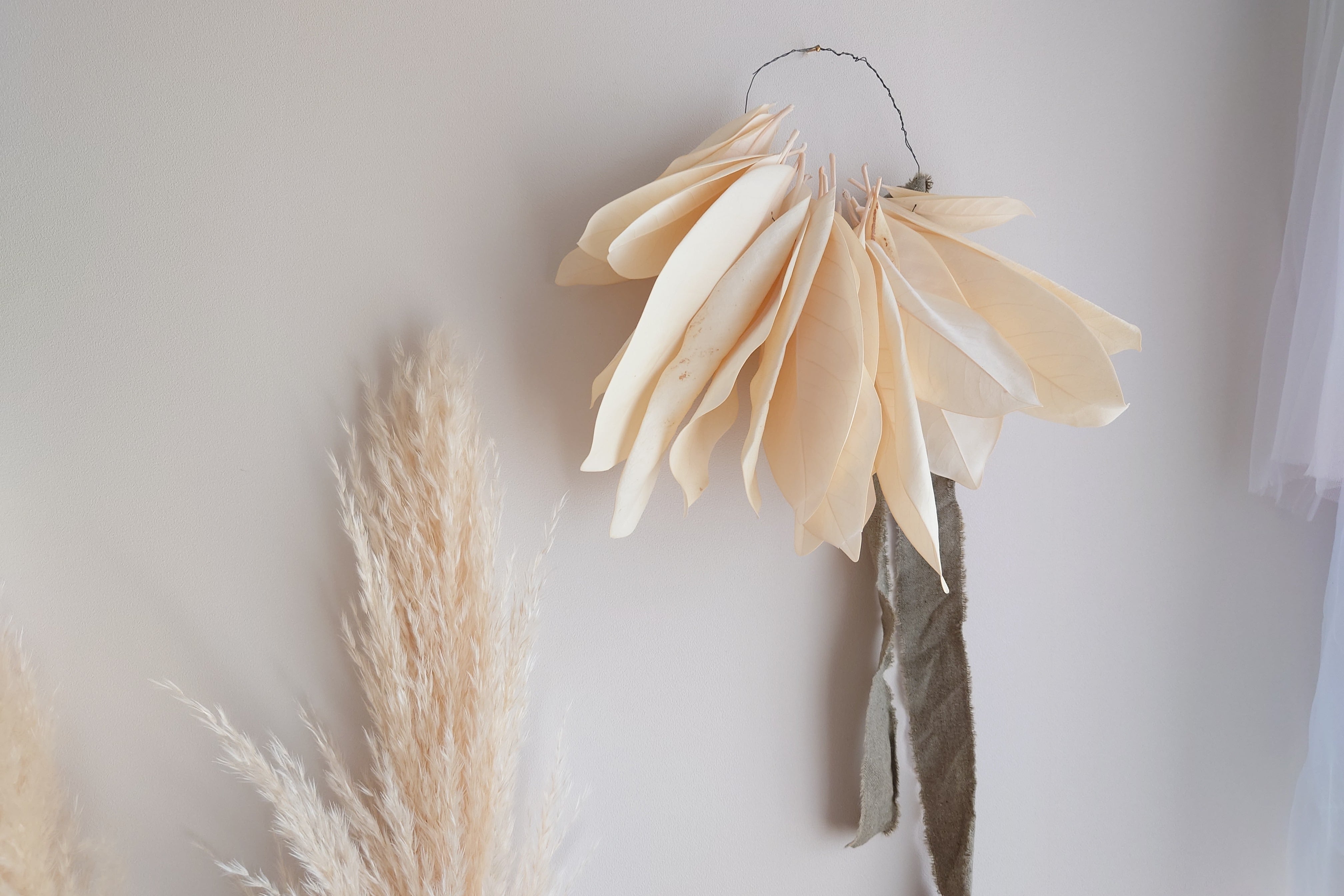 【送料無料】ホワイトマグノリアリーフの壁掛け ドライフラワーリース*ナチュラルインテリア*壁飾り