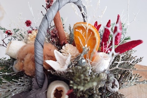 シナモンやオレンジスライス、コットンや木の実などナチュラルな素材をたっぷり使用。