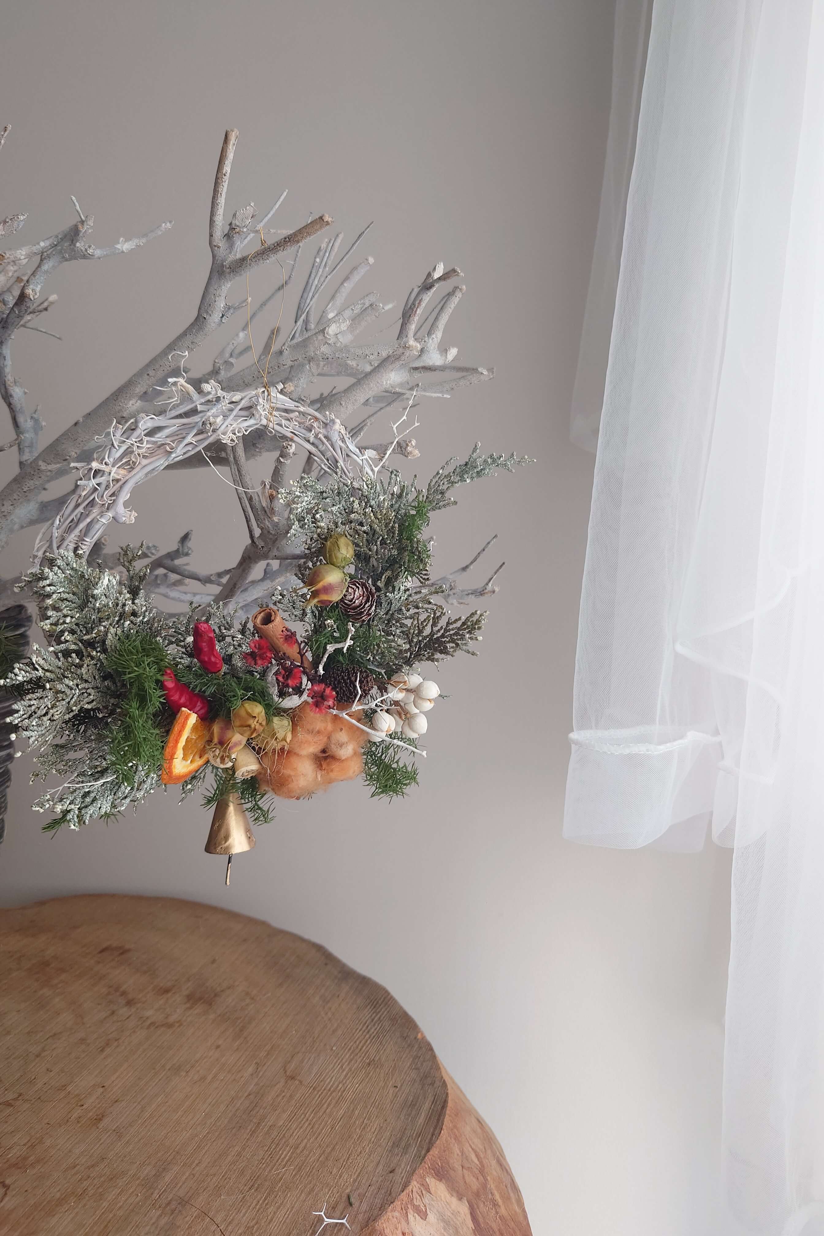 【15㎝|送料無料】 小さなクリスマスリース|ナチュラルで大人可愛い冬のドライフラワーリース|おうちインテリアにぴったり