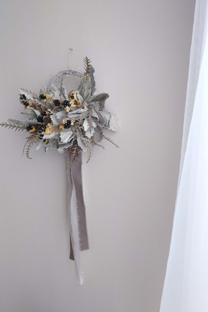 アクセントを添える上品な大人の冬インテリアにぴったりのリースです。