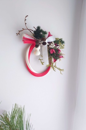 白と紅の水引 しめ飾り|ナチュラルモダンなお正月飾り